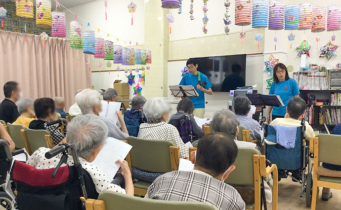 歌ボランティアの方々に来ていただきました。楽しく手拍子する方や感動して涙を流される方、また話がおもしろく大笑いしている方もおられました。