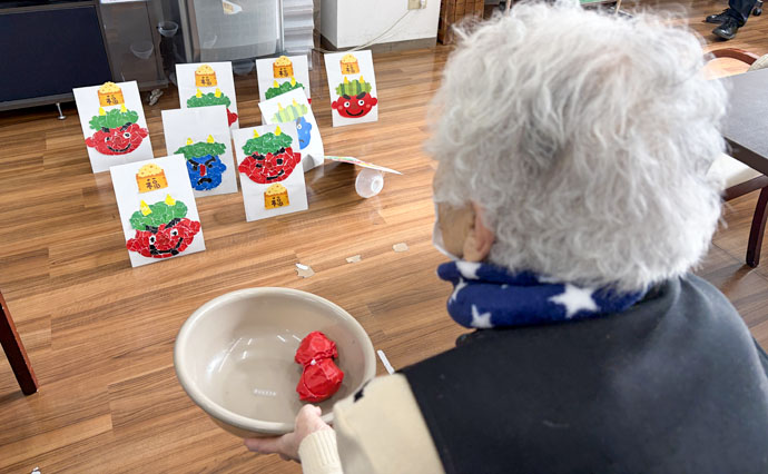 職員が鬼に扮し、皆さん楽しく豆を投げ鬼退治しました!