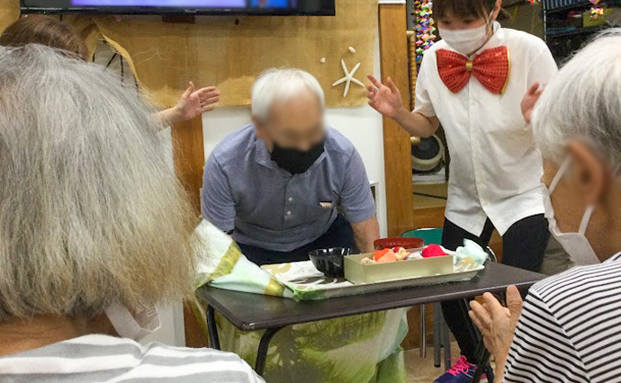 ひげダンスやマジックを披露すると、皆様びっくりした表情や
