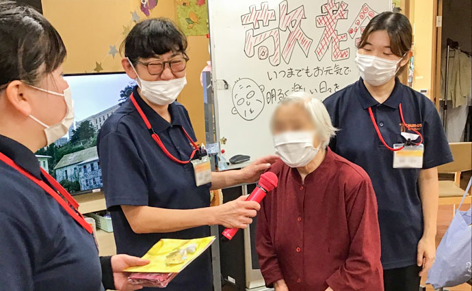 音楽療法の先生に来て頂き、皆様、楽しい時間を過ごされました♪