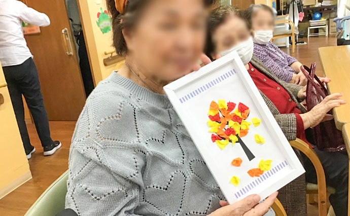 所長の力作の秋の山です。ご利用者様とともにイノシシも作りました。可愛らしいですね!