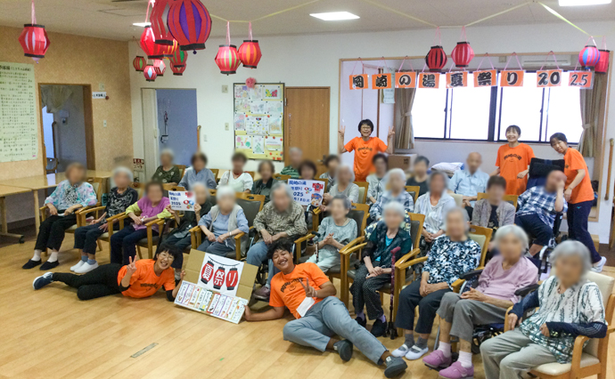 岡崎の湯ではチーム対抗のゲームが大盛り上がり!スタッフも加わり皆様大真面目に勝ちにこだわったいます!