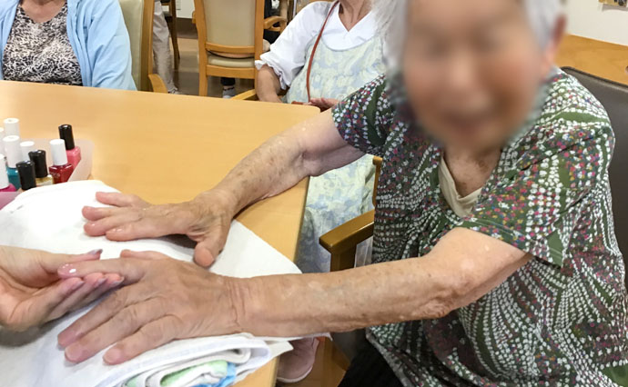 開設して初めてのマニュキュア体験をしました。 女性利用者様達「初めてやったわ♪」と大感激!! 皆様家族様へ披露し「次はつけまつげね!」と 次回の開催を楽しみにしてくださっています✩✩