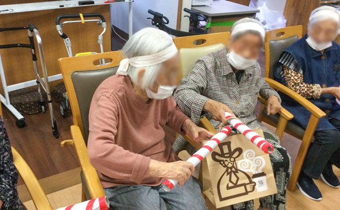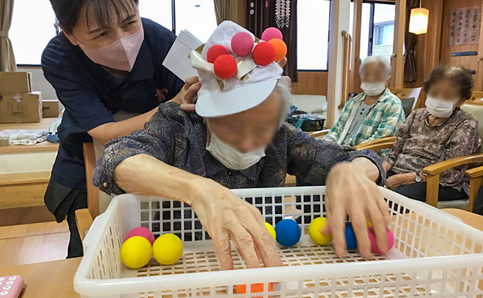 利用者様だけに行ってもらうだけでなく、スタッフも混じり笑いがたえません。