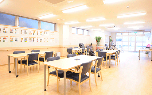 お一人おひとりの目的や状態に合わせた機能訓練プランをご提供するほか、広い大浴場や多彩なレクリエーションで、ご自宅での暮らしを末永く・元気に続けていただくためのお手伝いをしています。
