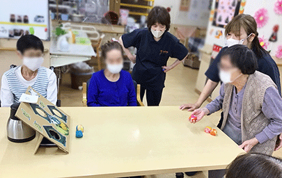 毎日、いろいろなお題で脳トレを行ってます、答え合わせの前にご利用者様同士で答えを見せ合いっこされたりと交流されておられます。