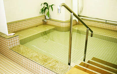 デイサービスはお風呂が命。たつみ湯では、男性の方でも足を伸ばして浴槽に浸かっていただけます。一度に3~4人程度入っていただけます。「湯」という名前がついているほどですので、お風呂には自信があります。車椅子ご利用の方も専用のリフトチェアーにて浴槽に入っていただけます。