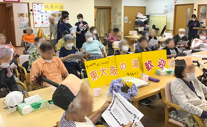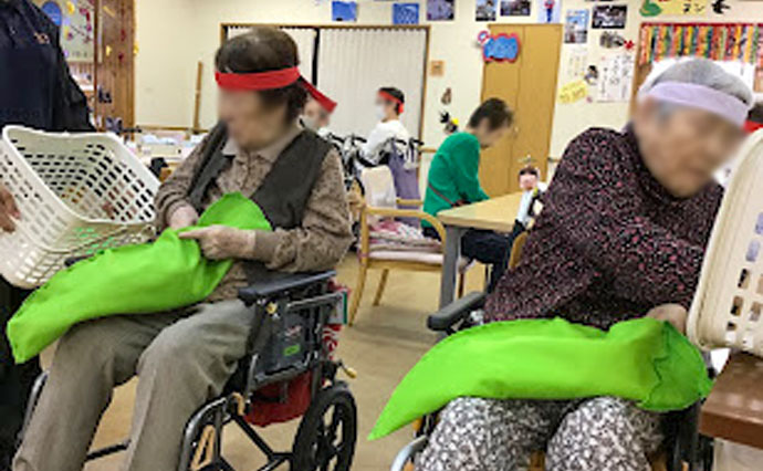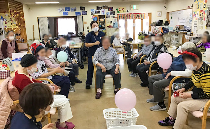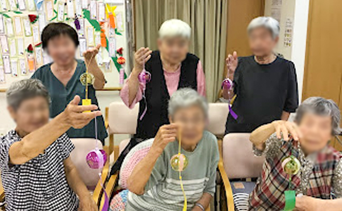 夏祭りにヨーヨー釣りをしました。皆さま真剣です。