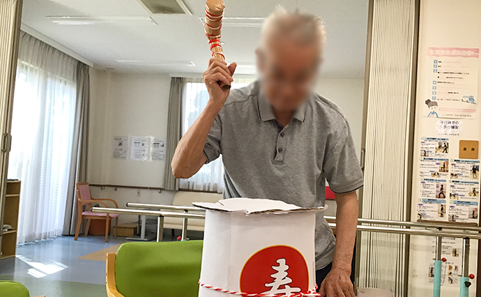 新たなイベントとしてカンパチの解体ショーを行いました。数名のケアマネージャー様も見学に来て下さり、ご利用者様からも目の前で行われる解体を見て「おおー」と歓声が上がっておりました。「コリコリしておいしい」と大好評でした。