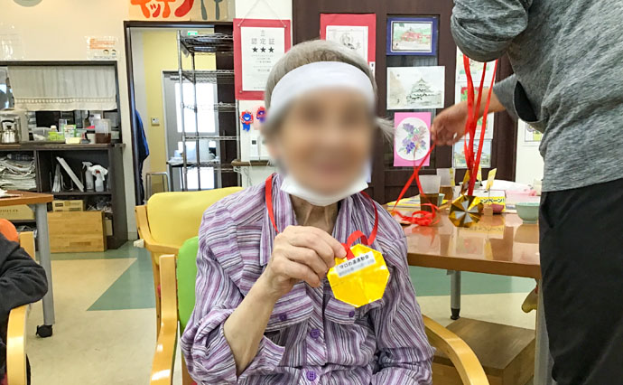 4月はさくらの短冊作りを行いました。男性のご利用者様も一生懸命作られ、出来栄えに「良いもんできたわ」と笑顔で言われておりました。