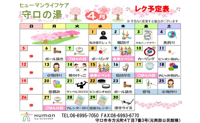 来月のレク表ができました♪