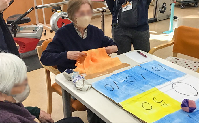 ビンゴボールゲームで体を動かしました。