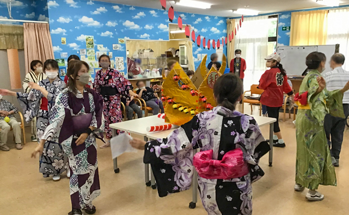 ご利用者様もスタッフも浴衣を着て楽しみました♪