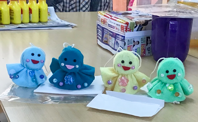 皆様には顔とひらひら部分にビーズやシールで可愛く貼っていただきました!