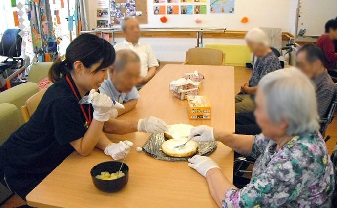ご利用者の皆さまと一緒にバースデーケーキを作りました。