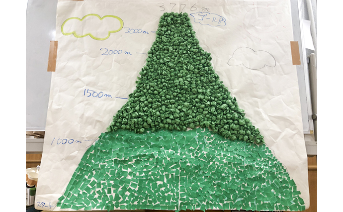 ハロウィン工作で毛糸でクモの巣をイメージしたオブジェです。静かに集中して作成されておりました。