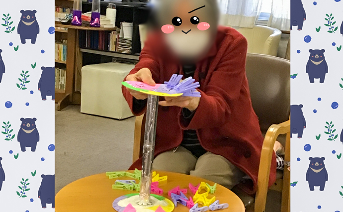 「洗濯ばさみを紙皿に挟む」レクレーションを行いました。