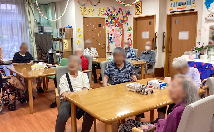 2ヶ月に1回紙芝居や南京玉すだれなど、毎回趣向を凝らしていただいています。楽しい時間です。