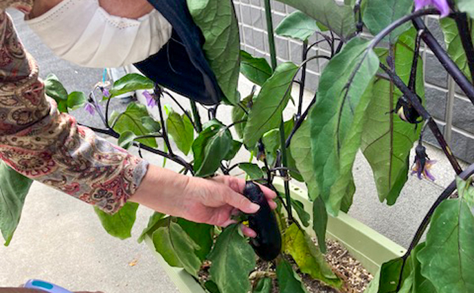プランターに植えた 茄子 ミニトマト ピーマン。